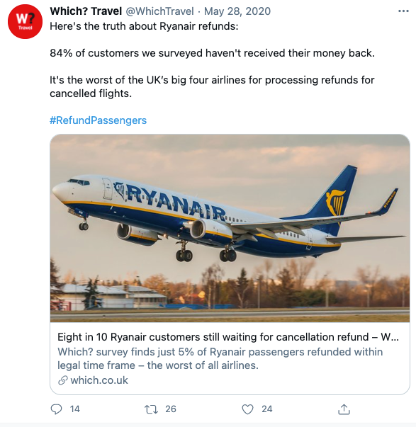 The UK regulator the CMA is even conducting an investigation into whether airlines like Ryanair, easyJet, British Airways and others breached consumer rights laws during Coronavirus.