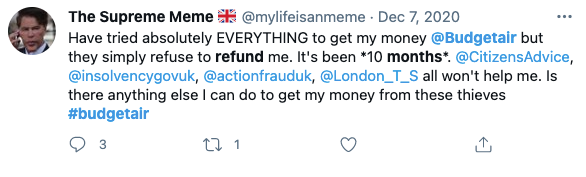 BudgetAir is an online travel agency and claims to be the number 1 online travel agent in the UK. During Covid, many millions of passengers had flights cancelled and were left chasing refunds from BudgetAir and other online travel agents like TravelUp, eDreams and Opodo.